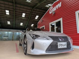 阿南市のM様 SEMAshow3層コーティング ご依頼ありがとう御座います◎ 硬い被膜が小傷からLC500を守ります◎ ピッカピカ グラッパガラスコーティングが 楽しいカーライフをサポート致します◎ 「徳島で車を一番綺麗にできる場所グラッパ」かつて近畿で修行し その腕を買われて「モーターショー」の舞台にも立ったグラッパ代表が 徳島で独立して30年が来ようとしています。多くのお客様に支えられ 現在グラッパは津田海岸町にて「300坪」という県内最大級の圧倒的なスケールで営業しております◎「他とは違う、本物の輝きを体感したい」そんなこだわり派のオーナー様 ぜひ私たちグラッパの技術をその目でお確かめくださいませ◎
