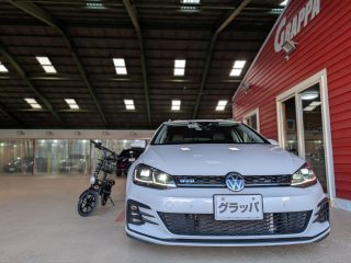 徳島市のT様 お洒落さんより グラッパコーティングご用命頂きありがとうございます◎ 電動バイクをゴルフヴァリアントに乗せてのご来店で御座いました◎