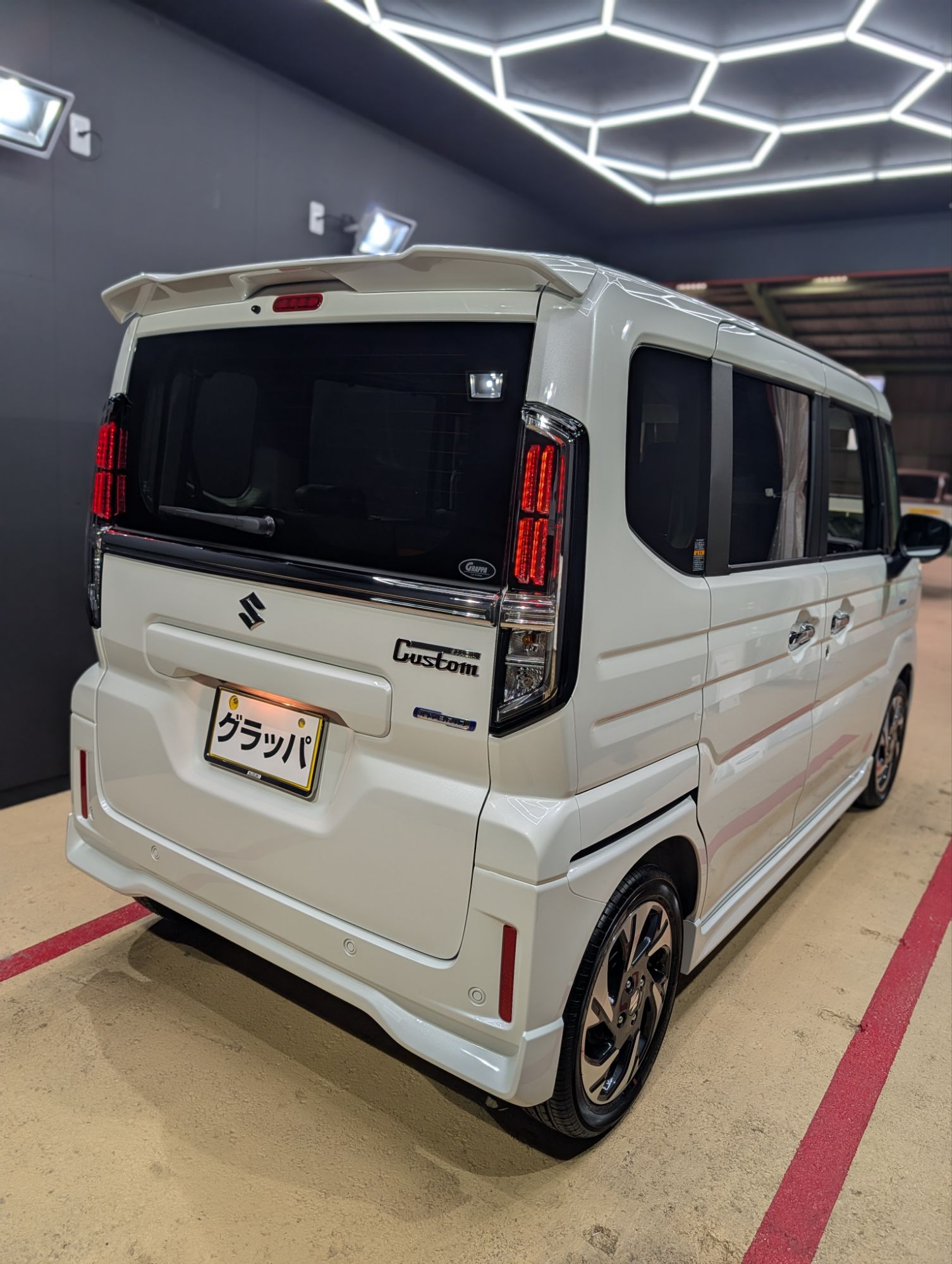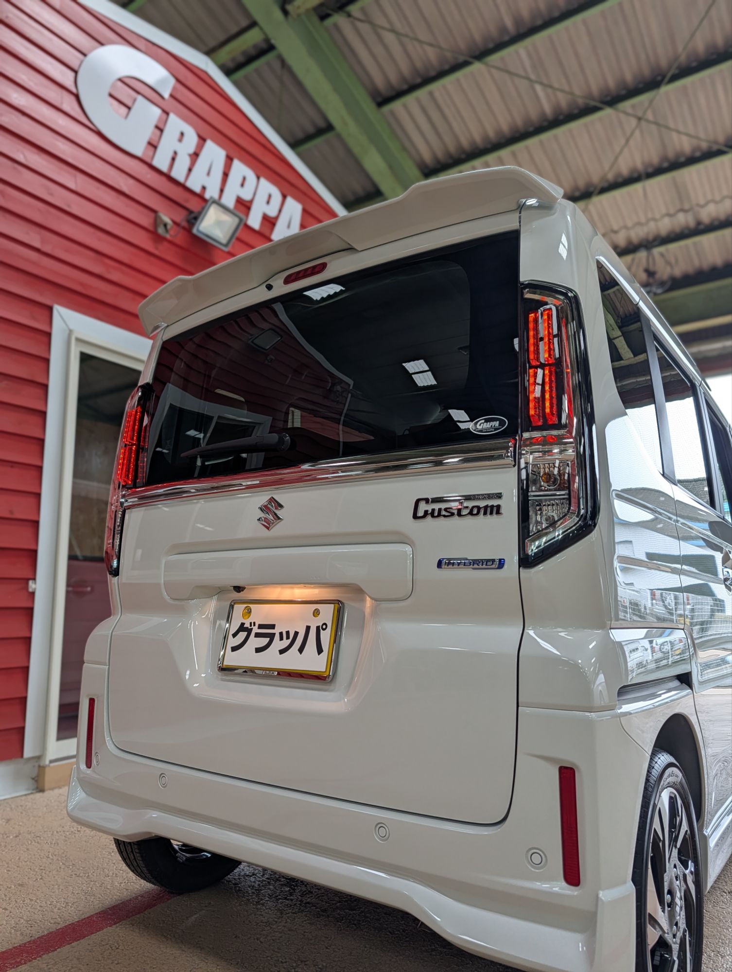 スズキ◎スペーシア 石井町在住のK様 プレミアムコンディション グラッパ最新ガラスコーティングのご依頼ありがとうございます◎ 全国指折りの ガラスコーティング専用店「グラッパ」完全無機質の被膜が塗装と一体化し 酸化や劣化から愛車スペーシアを保護致します☆ 5つの専用施工ブースと熟練の職人チームが 1台1台の保管環境に合わせた最適な施工をお約束します◎ 新車納車日に合わせた「ファイブブース予定管理システム」で お待たせする事なく 愛車に最高のピッカピカをプラス致します☆ ガラスコーティング 「SEMA Show」